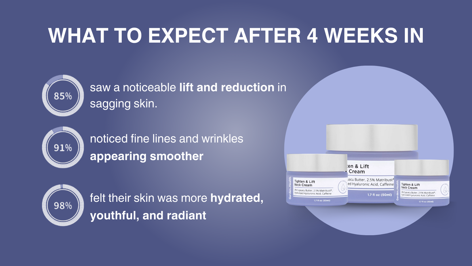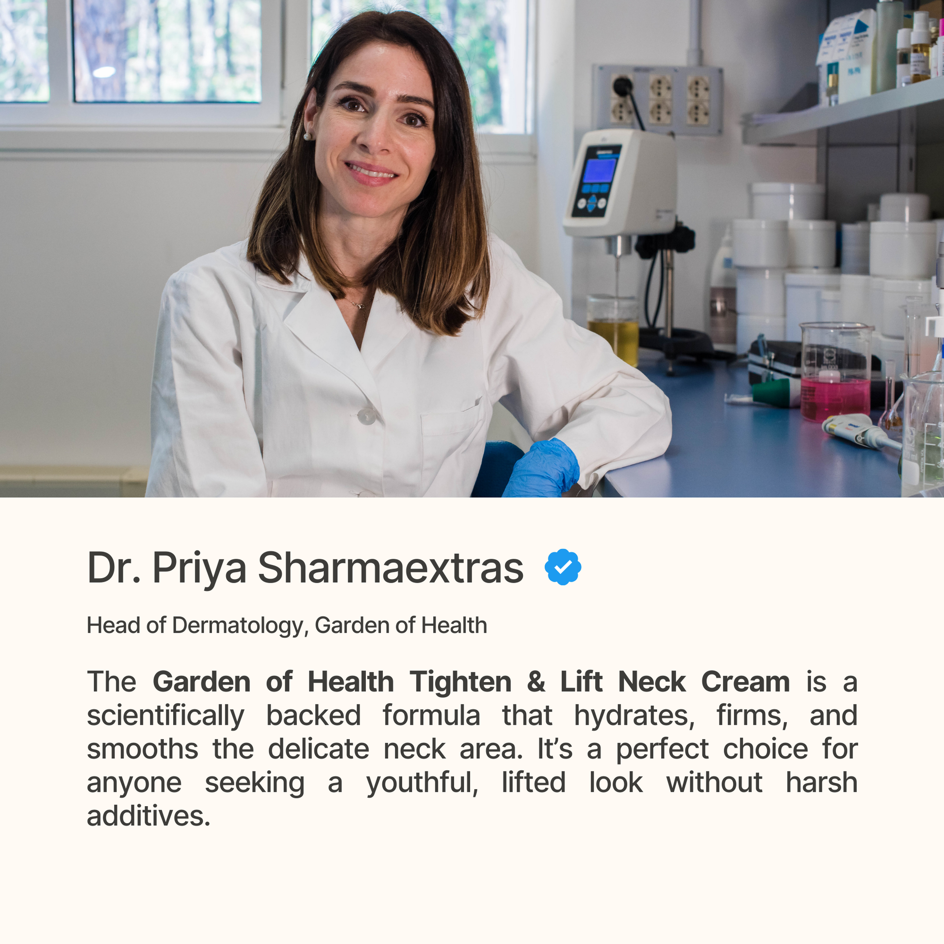If you use Garden of Health Tighten & Lift Neck Cream for 30 days and don't experience visibly smoother, firmer, and more rejuvenated skin on your neck and chest, send an email to support@trygardenofhealth.com and we'll provide you with a full refund.
